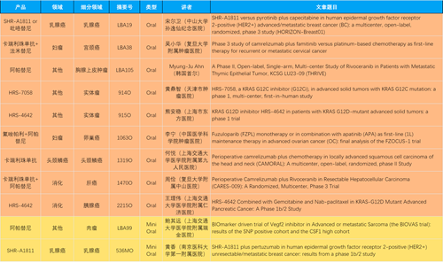 在消化系统肿瘤领域,利来产品相关研究共入选2项口头报告、11项壁报和1项电子壁报,共14项研究。除卡瑞利珠单抗和阿帕替尼外,还有4篇阿得贝利单抗治疗消化系统肿瘤研究入选。HRS-4642、瑞拉芙普-α注射液(SHR-1701)等在研创新产品也有相应研究亮相。另有1项伊立替康脂质体(II)用于胰腺癌治疗的研究入选壁报。