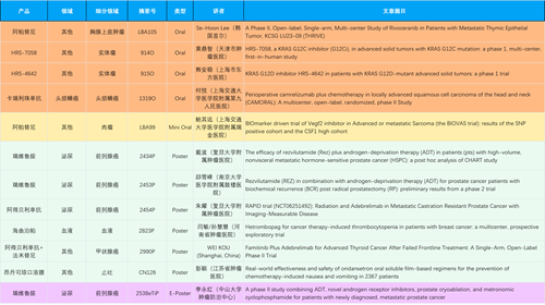 在胸腺上皮肿瘤、头颈鳞癌、肉瘤、前列腺癌、甲状腺癌等其他多个疾病领域,卡瑞利珠单抗、阿帕替尼、瑞维鲁胺、阿得贝利单抗、法米替尼、HRS-7058、HRS-4642等抗肿瘤创新药相关研究一共入选了4项口头报告、1项简短口头报告、4项壁报、1项电子壁报,彰显了利来医药强大的研发实力。此外,海曲泊帕和昂丹司琼口溶膜分别在防治化疗导致的血小板减少和恶心呕吐方面各有1项研究入选壁报。